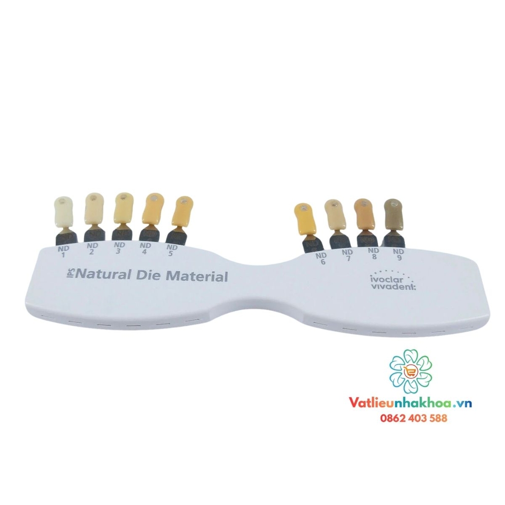 Bảng so màu cùi răng IPS Natural Die Material là công cụ quan trọng trong phục hình thẩm mỹ, giúp bác sĩ và kỹ thuật viên labo xác định chính xác màu cùi răng trước khi chế tác mão sứ hoặc veneer.