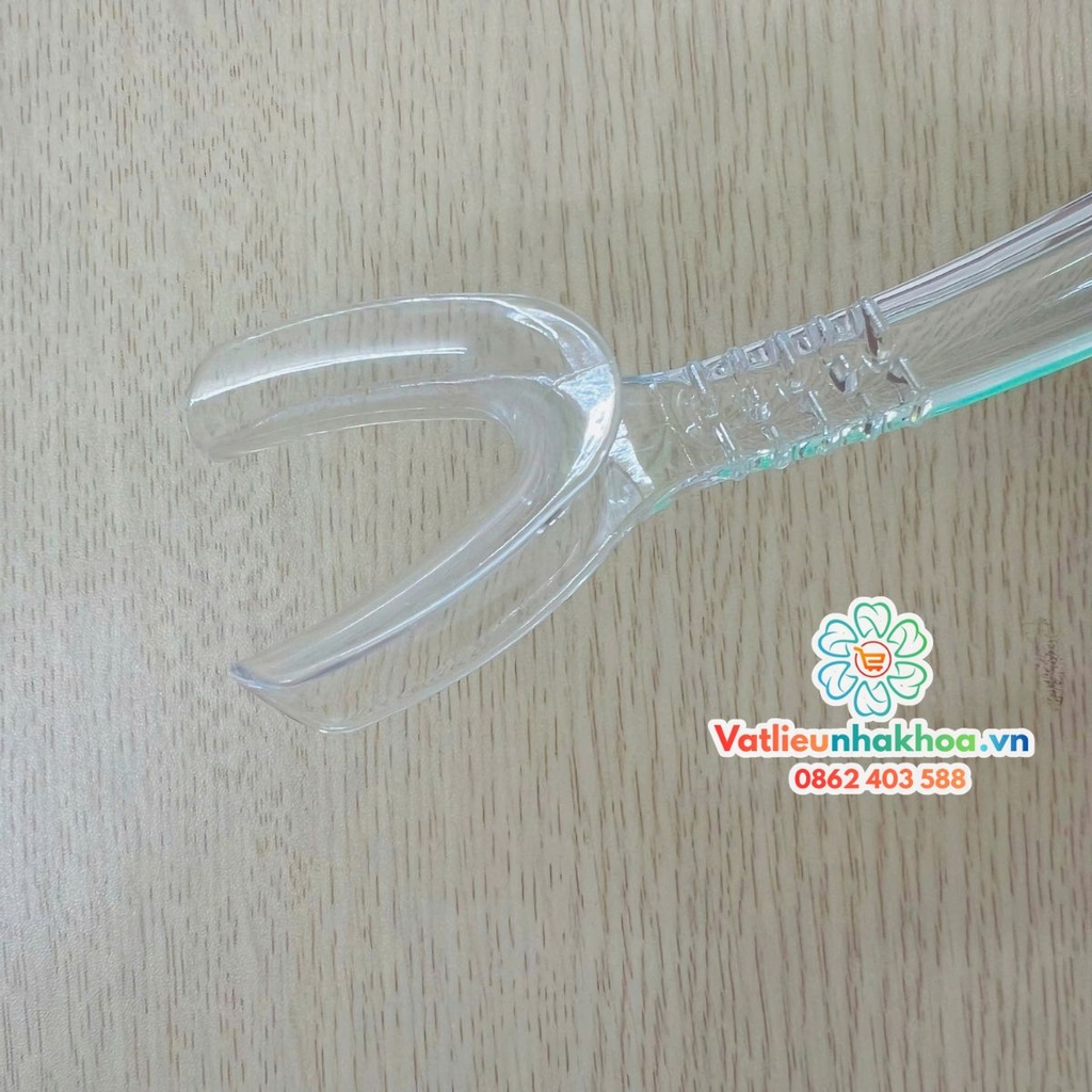 Banh miệng nhựa kéo 1 đầu trắng dùng để banh môi và má trong quá trình điều trị nha khoa.