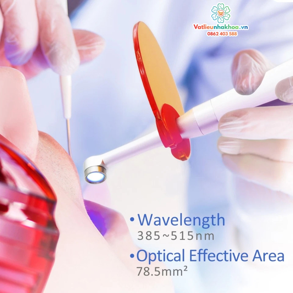 ✓ Dải quang phổ rộng, tương thích vượt trội: Đèn hoạt động trên dải quang phổ rộng 385-515nm, đảm bảo tương thích và hoạt hóa hiệu quả hầu hết các loại vật liệu composite phổ biến trên thị trường hiện nay.