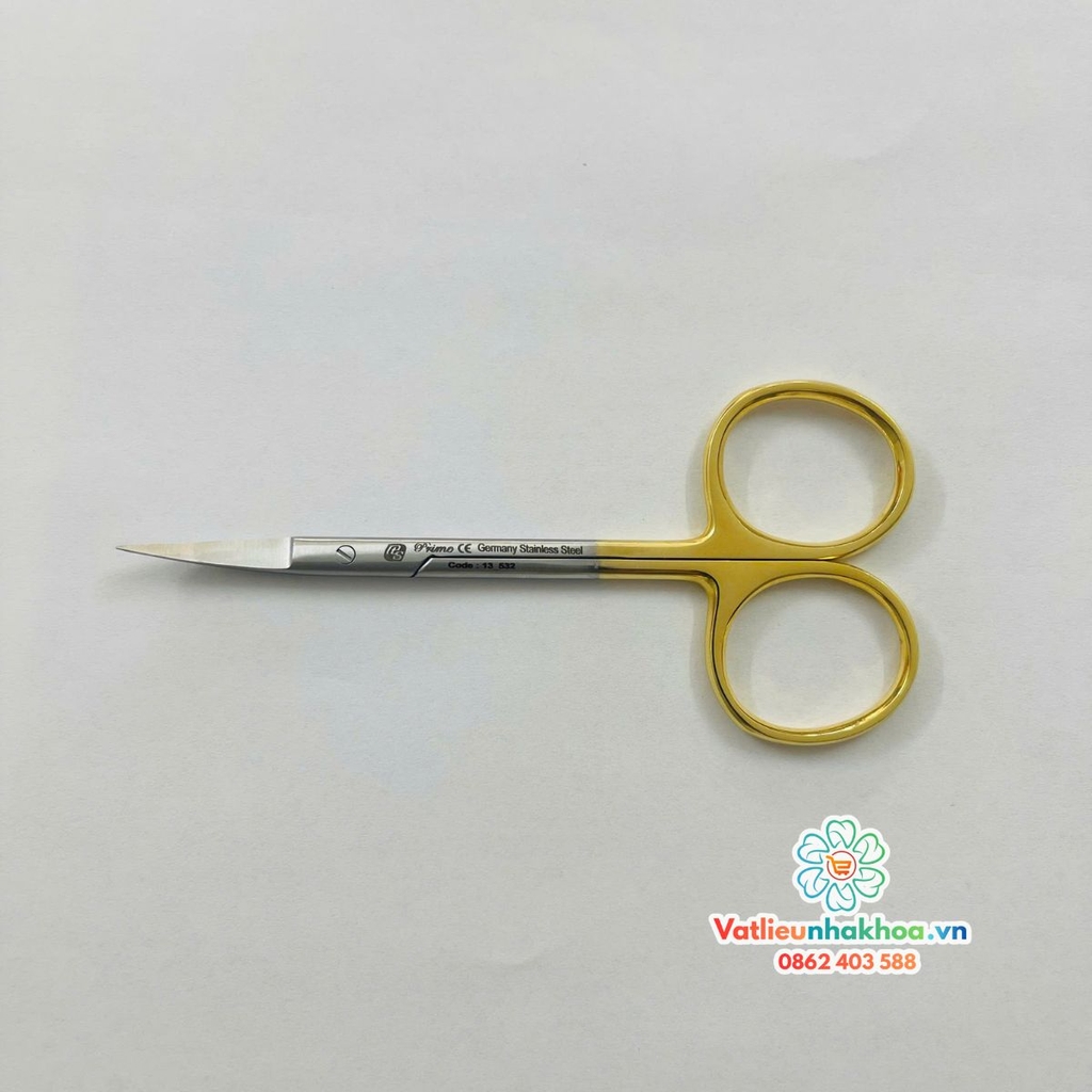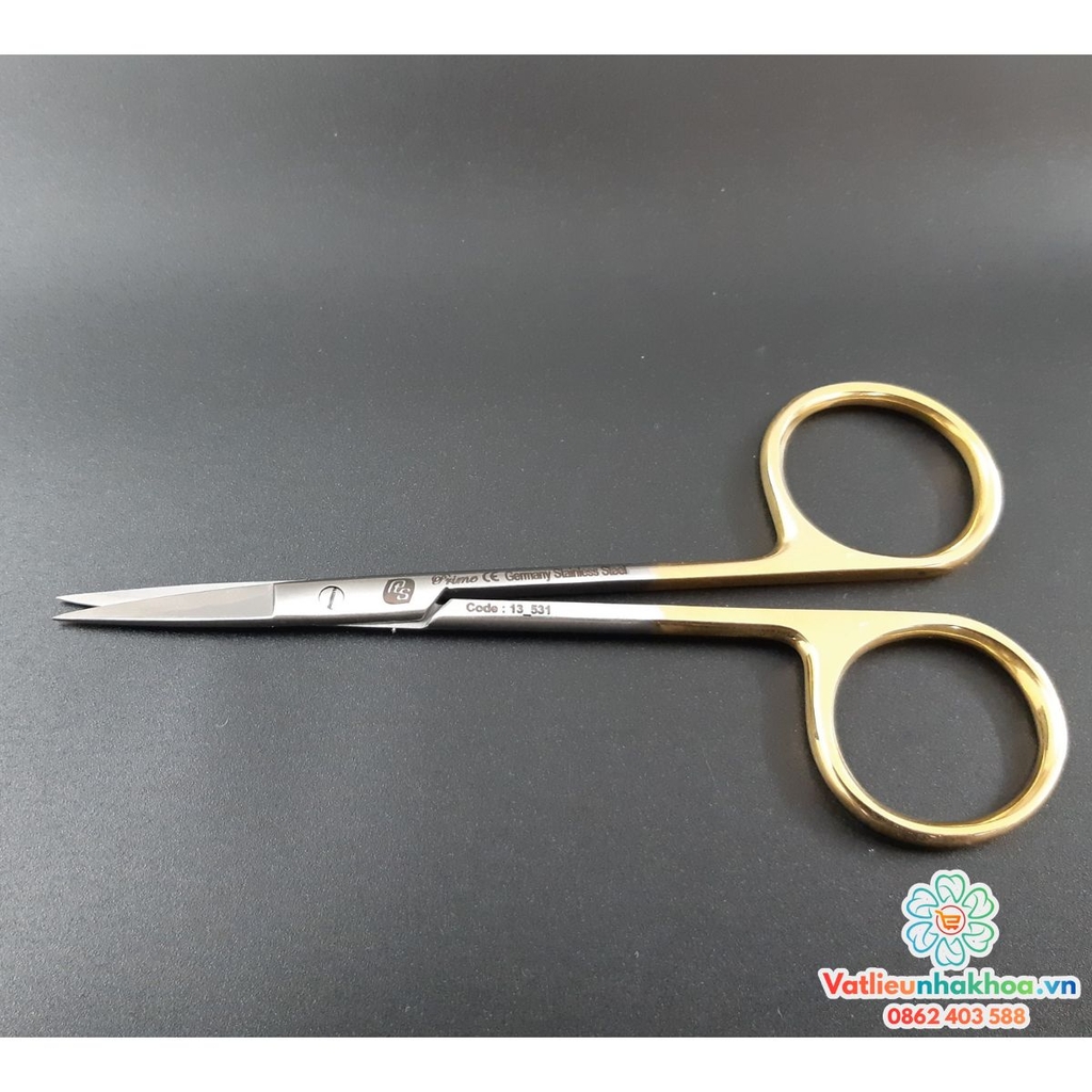 Kéo cắt chỉ cán vàng Prime là dụng cụ phẫu thuật nha khoa chuyên dụng, được thiết kế để cắt chỉ khâu chính xác và an toàn sau các thủ thuật. Sản phẩm có lưỡi sắc bén, độ bền cao, phù hợp sử dụng trong phòng khám nha khoa và tiểu phẫu.