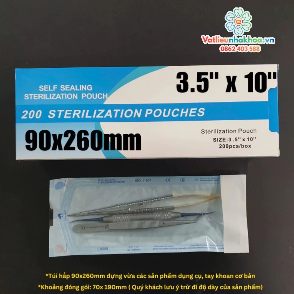 Túi hấp tiệt trùng y tế dán sẵn (Hộp 200 túi)